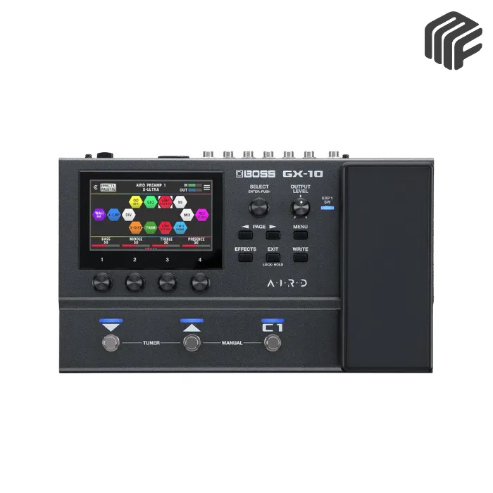 بالإضافة إلى ذلك، يوفر GX-10 مجموعة متنوعة من المؤثرات مثل التشويه (Distortion)، الكورس (Chorus)، الريفيرب (Reverb)، الديلاي (Delay) وغيرها، مما يمنح العازف القدرة على تشكيل صوته الخاص بسهولة. على سبيل المثال، يمكن للعازف الانتقال من نغمة نظيفة ودافئة إلى أصوات صاخبة مثالية للروك والميتال بضغطة زر واحدة.