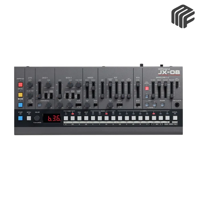 يتميز Roland JX-08 بمحرك صوتي متقدم يعتمد على تقنية Analog Circuit Behavior (ACB) التي تعيد إنشاء الدوائر التناظرية بدقة عالية. تمنحك هذه التقنية نفس الدفء والنغمة الغنية التي جعلت JX-8P أسطورة موسيقية. يمكنك تعديل الأصوات باستخدام الواجهة المليئة بالأزرار والمنزلقات التي تمنحك تحكمًا مباشرًا وسريعًا في كل تفصيلة.