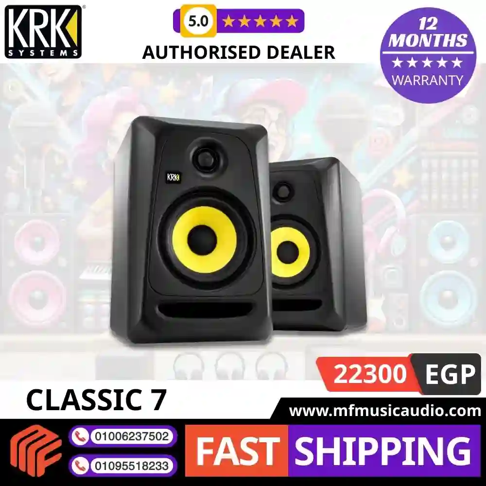 سماعات مونيتور كى ار كى كلاسيك 7 انش  Studio Monitor 7 (KRK Classic 7) هي سماعات مرجعية من إنتاج شركة KRK Systems، وهي مخصصة للاستخدام في الاستوديوهات والإنتاج الموسيقي المحترف. تعتبر جزءًا من سلسلة السماعات الشهيرة لديهم.