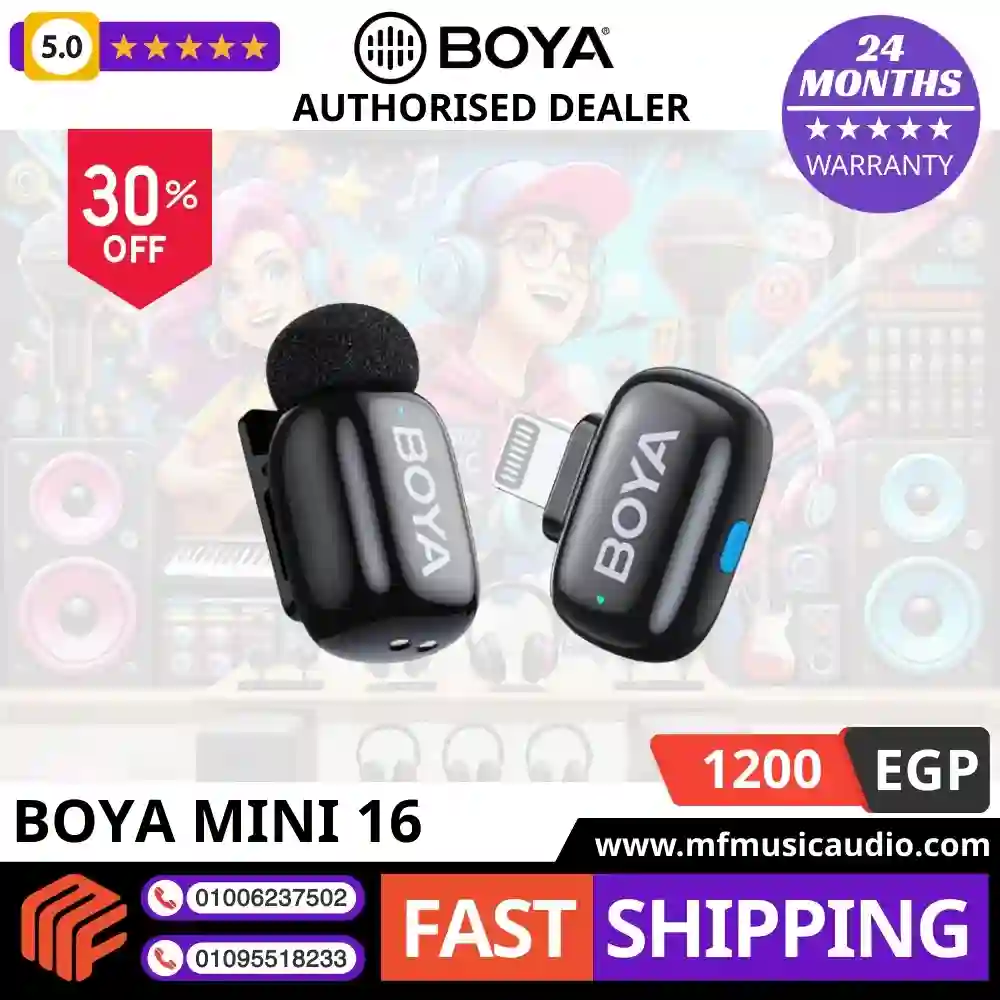 ميكروفون BOYA للايفون مصمم خصيصًا للعمل مع جميع أجهزة iPhone المزودة بمنفذ Lightning، ويتميز بتصميم صغير وخفيف يسهل حمله في أي مكان، ويمنحك حرية كاملة أثناء التصوير أو التسجيل.