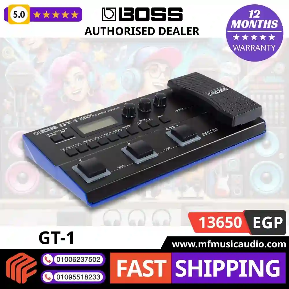 معالج BOSS GT-1 يحتوي على العديد من الميزات التي تجعله أداة قوية ومتعددة الاستخدامات لعازفي الجيتار من جميع المستويات.