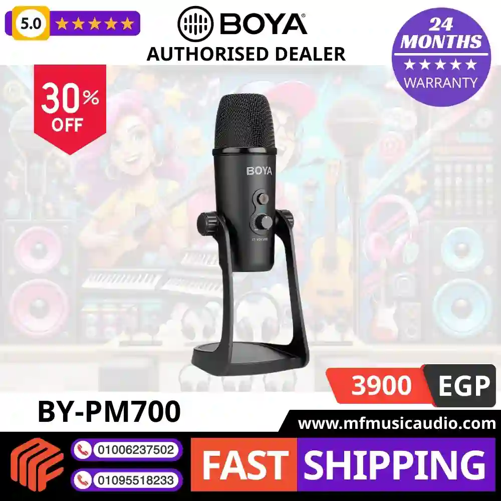 صمم ميكروفون BOYA BY-PM700 ليقدم أداءً صوتيًا متميزًا مع مرونة كبيرة وراحة توصيل USB. إليك أبرز مميزاته ومواصفاته: