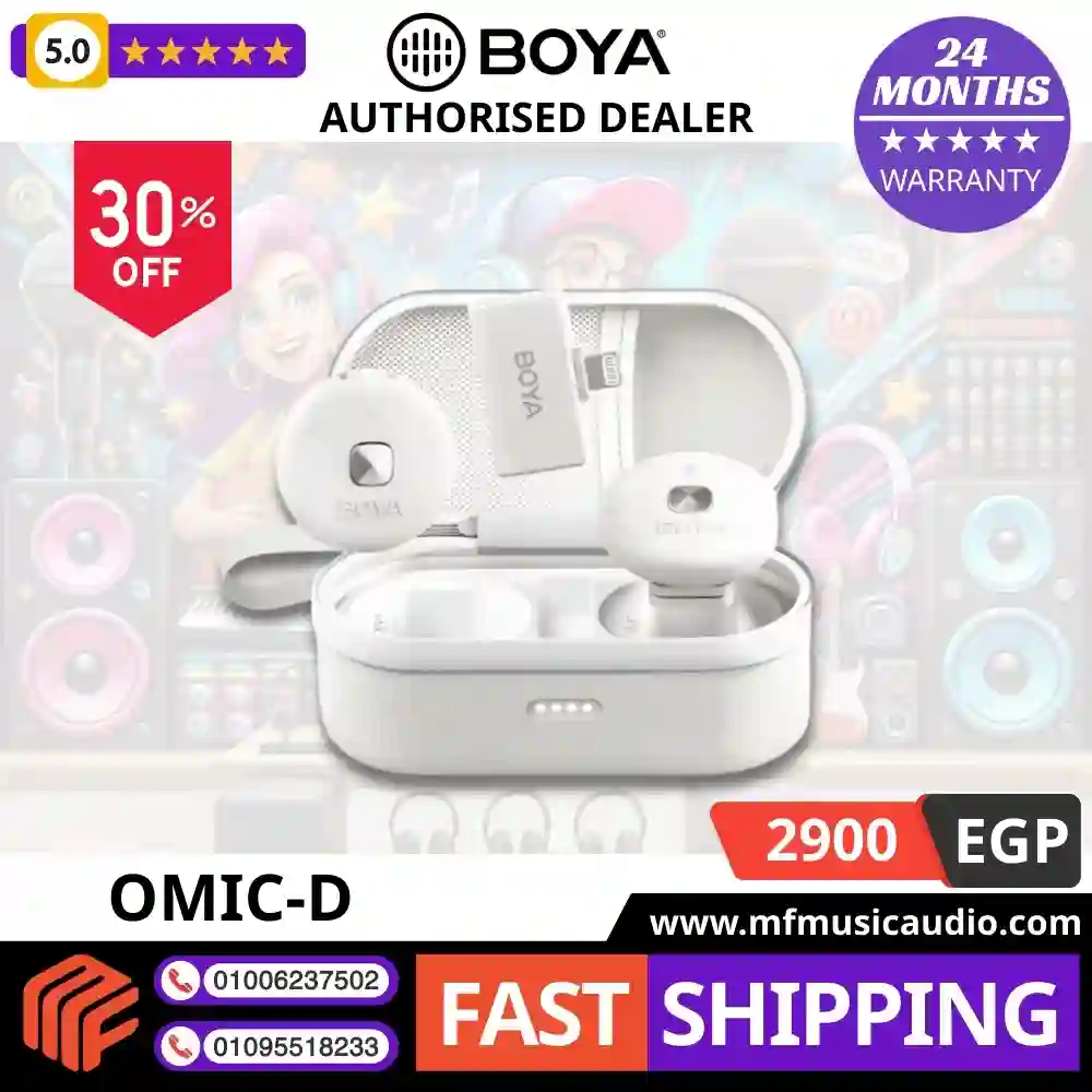 هل أنت صانع محتوى أو مذيع وتستخدم هاتف iPhone أو جهاز iPad الخاص بك لتصوير فيديوهاتك أو بث المحتوى الخاص بك؟ هل تبحث عن حل صوتي لاسلكي يجمع بين الأداء الاحترافي والتصميم العصري؟ إذًا، نظام ميكروفون BOYA Omic-D اللاسلكي المزدوج باللون الأبيض هو الخيار الأمثل لك. يتميز هذا النظام بحجمه الصغير جدًا وسهولة استخدامه، مما يجعله مثاليًا للتسجيل أثناء التنقل. بفضل الاتصال المباشر بمنفذ Lightning وميزاته المتقدمة مثل إلغاء الضوضاء والمراقبة الفورية، يضمن لك BOYA Omic-D صوتًا نقيًا وواضحًا في كل مرة، مع لمسة جمالية تتماشى مع معداتك.