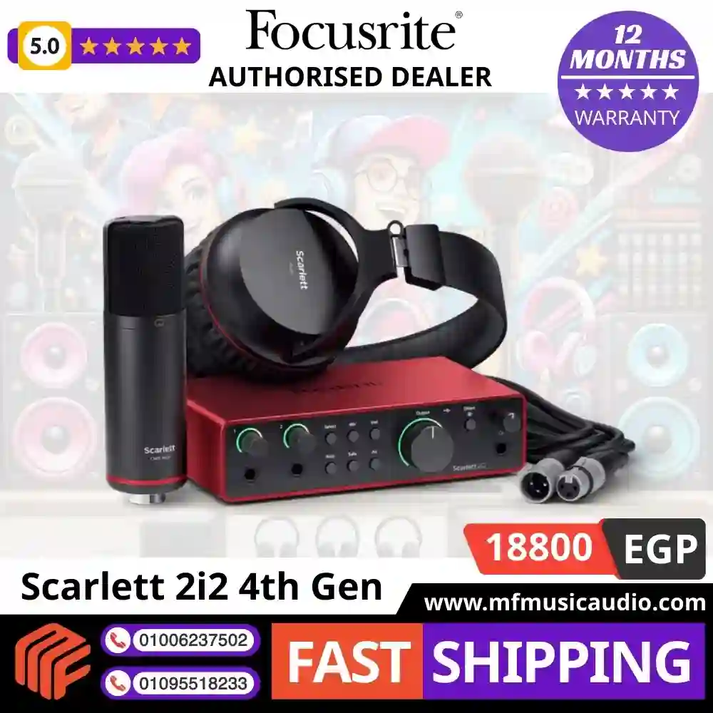 لقد صُممت حزمة Focusrite Scarlett 2i2 Studio 4th Gen لتقديم تجربة تسجيل وإنتاج موسيقي سلسة وعالية الجودة. إليك أبرز مكوناتها ومميزاتها بالتفصيل: