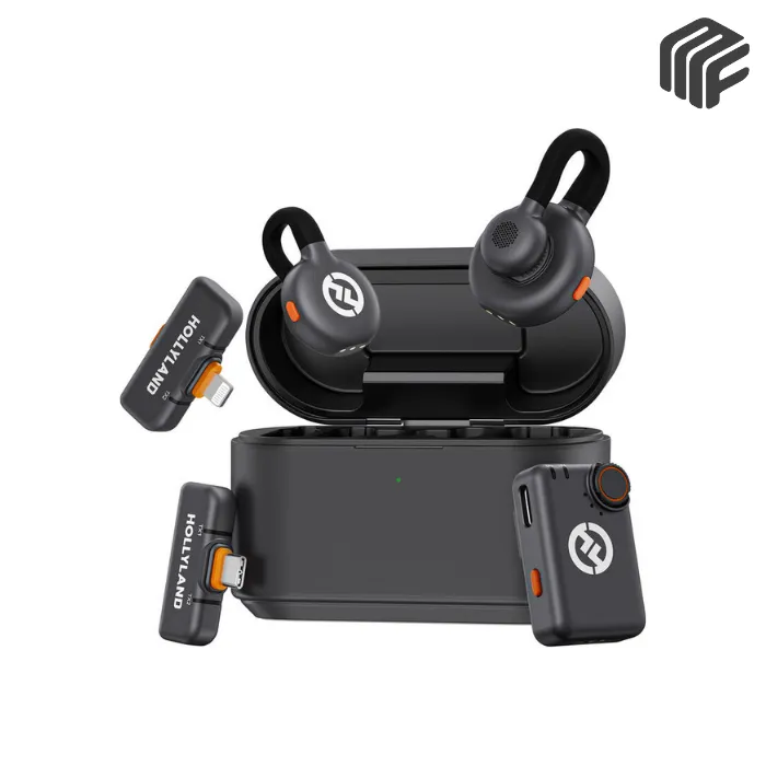 نظام Hollyland Lark M2S Combo هو الحل المثالي لصنّاع المحتوى الذين يحتاجون إلى صوت احترافي وبساطة في نفس الوقت. يتكون من وحدتين إرسال صغيرة جدًا (كل وحدة تزن حوالي 7 جرام) مع تصميم مشبك التيتانيوم الأنيق الذي يثبت الميكروفون بشكل طبيعي على طوق القميص أو الملابس، دون أن يكون مرئيًا جدًا أو مزعجًا.