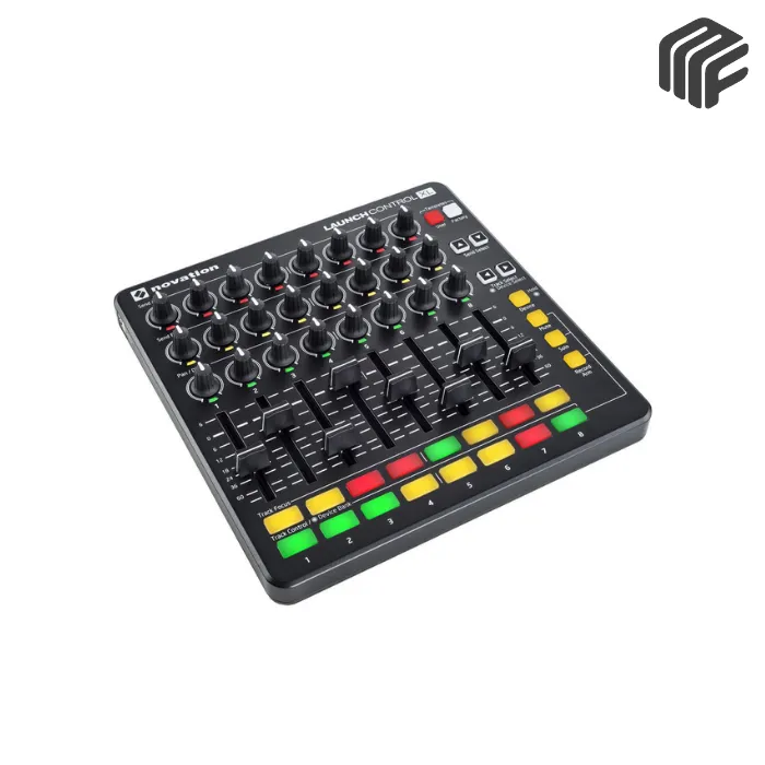 نوفيشن لانش كنترول XL MK2 لديه بنية تحكم واسعة تضمن أداءً احترافياً. أولاً، هو يوفر 24 مقبضاً دواراً مع مؤشرات LED متعددة الألوان. هذه الإضاءة الملونة تمكنك من التمييز بين الـ Sends (إرسالات التأثيرات) والـ EQs (المعادلات الصوتية) أو أي وظيفة أخرى. ثانيًا، هو مزود بـ 8 فادرز 60 ملم للتحكم الدقيق في مستويات الصوت. في الواقع، هذا يمنحك إحساساً حقيقياً بلوحات المزج الاحترافية. إضافةً إلى ذلك، هو يأتي بـ 16 زرًا متعدد الألوان قابلاً للتخصيص. هذه الأزرار تسمح لك بـ Solo وMute وتسليح التسجيل (Record Arm) على كل مسار بسهولة. من ناحية أخرى، يمكن تخصيص جميع عناصر التحكم بشكل كامل باستخدام محرر برامج. وبالإضافة إلى ذلك، يعمل الجهاز بـ طاقة USB، مما يجعله محمولاً ومناسباً للتنقل. ومن المؤكد أن هذا يجعله رفيقاً مثالياً في السفر. أخيرًا، نوفيشن لانش كنترول XL MK2 مدمج ومتين، ومصمم ليتحمل الاستخدام المكثف.