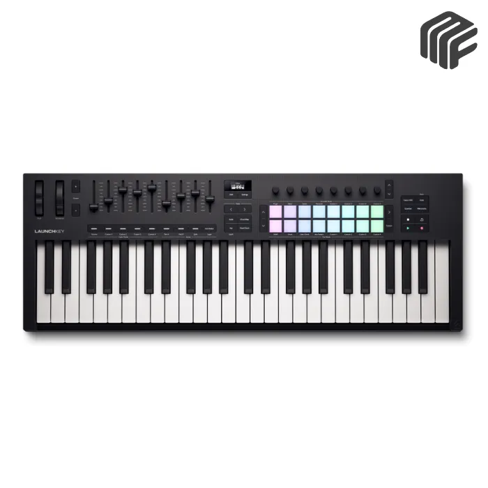 Launchkey 49 MK4 لديه مجموعة من الخصائص التي تضمن أداءً موثوقاً في الاستوديو. أولاً، هو يوفر 16 باداً RGB مطورة وحساسة للسرعة والضغط. هذه البادات مثالية للدرمز و Launching Clips. ثانيًا، هو مزود بـ أوضاع إبداعية متقدمة. هذه الأوضاع تشمل Chord Modes و Scale Modes لمساعدتك في إنشاء الألحان والتوافقات الموسيقية بسهولة. إضافةً إلى ذلك، هو يأتي بـ 9 Faders و 8 Rotary Encoders و 4 Custom Modes قابلة للتخصيص بالكامل للتحكم في معلمات البرنامج والمؤثرات. من ناحية أخرى، هو مزود بمخرج MIDI Out خماسي المسامير. هذا يتيح لك تشغيل أجهزة السنثيسايزر والمعدات الخارجية بسهولة. كما يدعم الكنترولر برامج DAW شهيرة أخرى مثل Logic و Reason، مما يعزز مرونته في أي بيئة إنتاج.